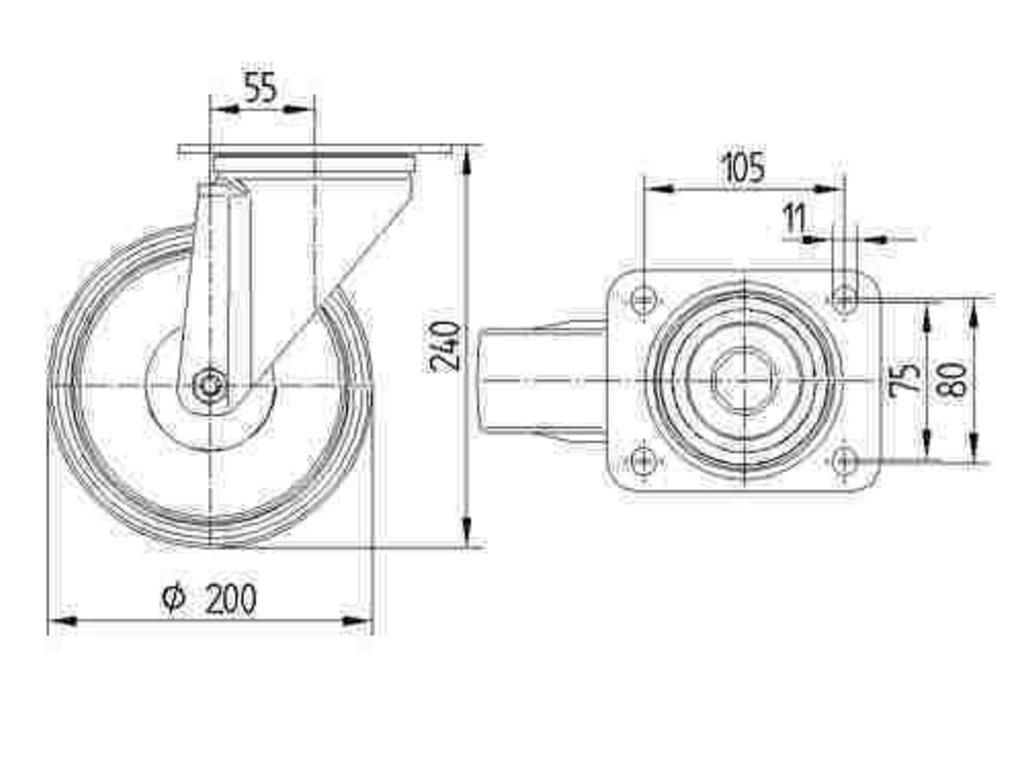 Kolečko pro vysoké zatížení 200mm, otočné, plotýnka, 3470ITP200P63 smart