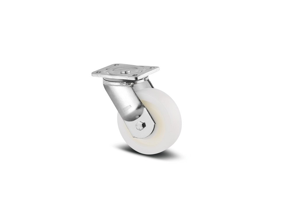 Otočné kolečko, Vidlice a plotna ze svařované oceli, zinkochromát, utěsněné ložisko s dvojitým speciálním kuličkovo-kuželovým ložiskem, snýtováno pevným nýtem a samojistící zajištěnou maticí, maznice, kolo se šroubem a maticí, uchycení s plotýnkou. Střed kola vyroben z polyamidu, vysoké zatížení, přesné kuličkové ložisko