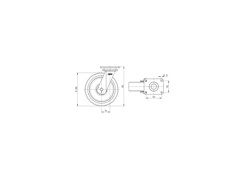 Kolečko pro vysoké zatížení 300mm, otočné, plotýnka, 9650FTP300x80P64