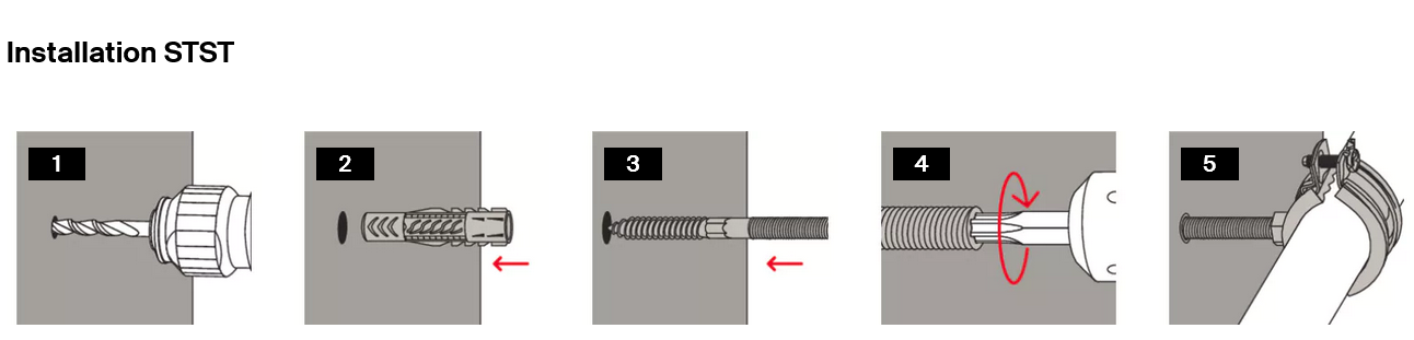 fischer kvalitní kombišroub umožňuje upevnění objímek na zeď. Díky drážce Torx nebo šestihrannému profilu na těle šroubu lze pohodlně kombišroub zašroubovat do hmoždinky nebo přímo do dřeva.