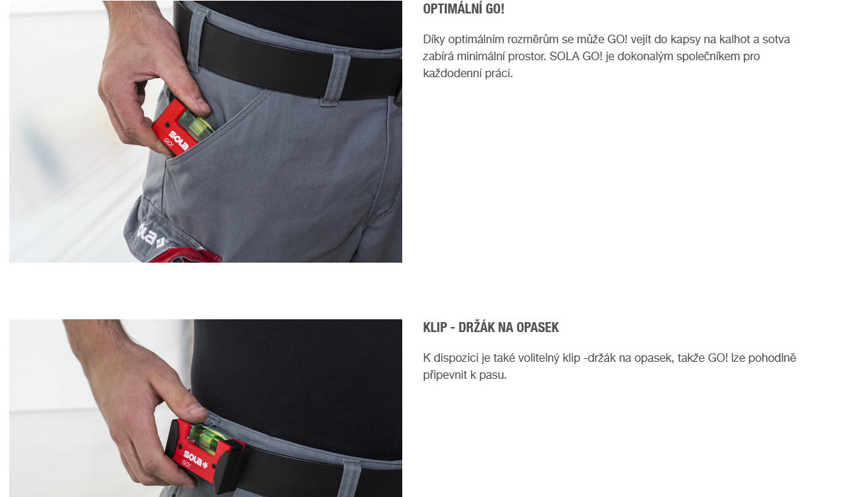 Kompaktní vodováha, GO! CLIP, délka 75 mm, rozměr 68 x 21 x 42 mm, SOLA