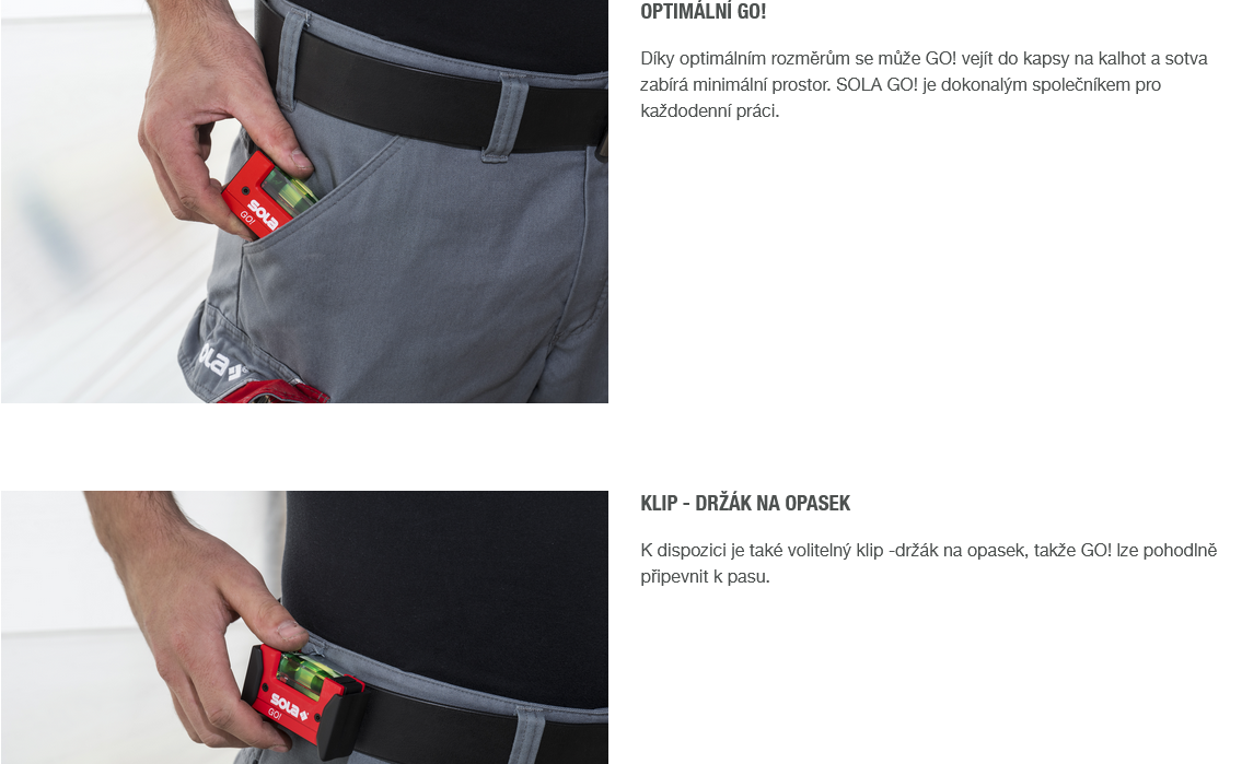 Kompaktní vodováha, GO!, délka 68 mm, rozměr 68 x 21 x 42 mm, SOLA