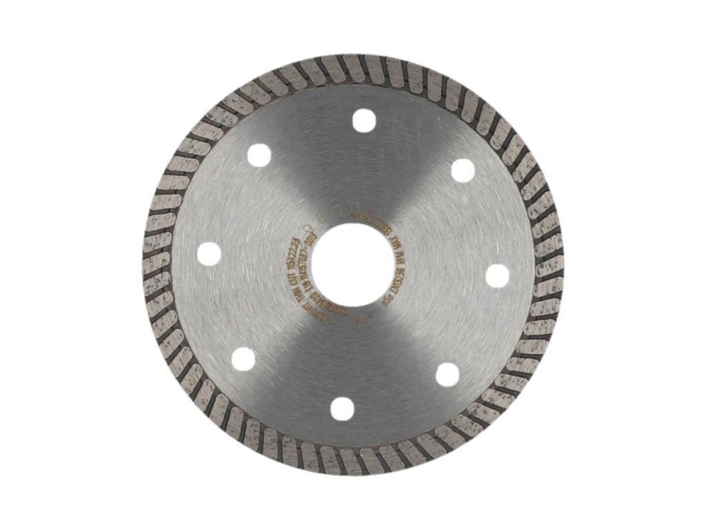 - Tenký celoobvodový segment se standardním zvlněním pro kvalitní řez na tvrdých keramických a porcelánových obkladech, cihlářských dlaždicích, pískovci a mramoru