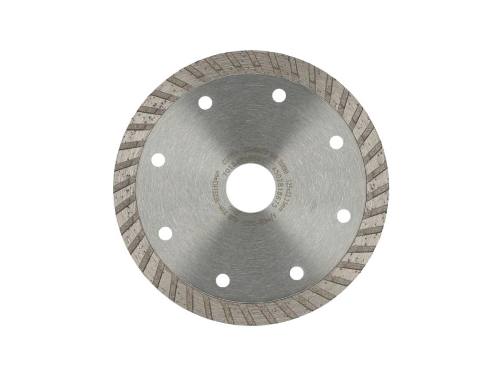 Cenově výhodný kotouč na stavební materiály, jako jsou cihly, dlažební kostky, betonové tvárnice a střešní tašky. Celoobvodový segment s turbo tvarem poskytuje agresivnější řezný účinek, ideální pro aplikace, které vyžadují dobrou povrchovou úpravu tvrdých materiálů.