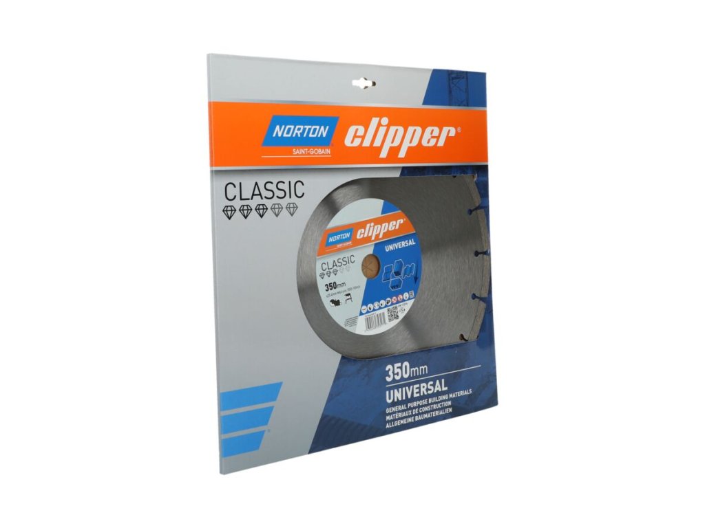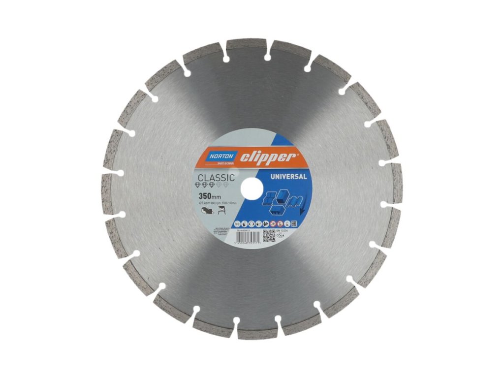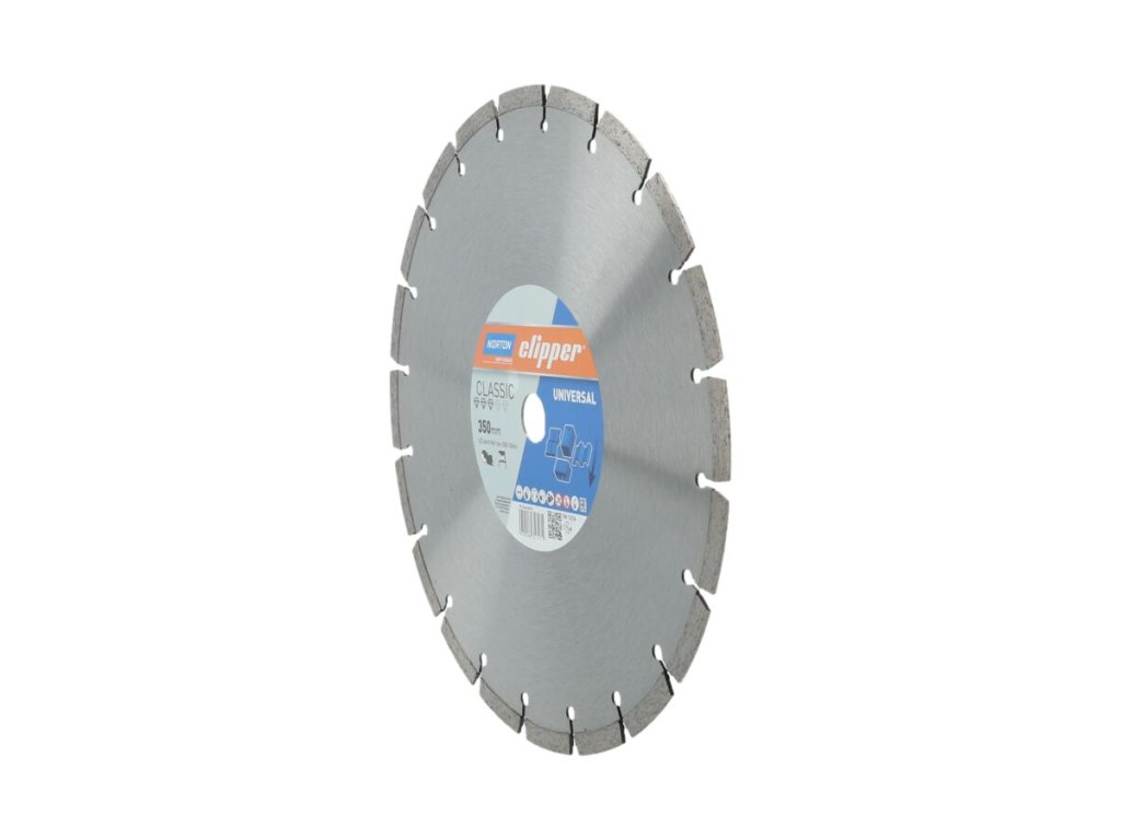 Řada Norton Clipper nabízí širokou škálu bezpečných a výkonných diamantových kotoučů. CLASSIC UNIVERSAL je slinutý kotouč s dobrým poměrem ceny a výkonu pro suché a mokré řezání. Použití: běžné stavební materiály.
