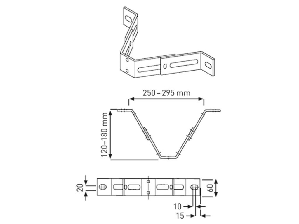 Přestavitelná kotva v rozmezí od 120-180 mm Vhodná pro kolejničky ochrany před pádem a žebříky s jedním nosným profilem Stěnové kotvy je nutné umístit ve vzdálenostech max. 1,12 mDoplňkové parametry