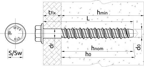 Kotva šroubovací do betonu R-LX se šestihrannou hlavou - zinek bílý