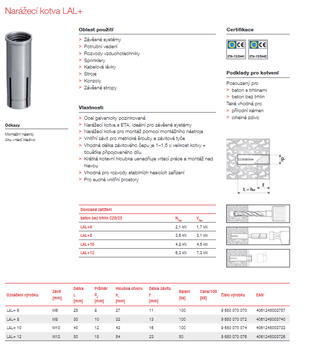 • Krátká kotevní hloubka usnadňuje vrtací práce a montáž nad hlavou