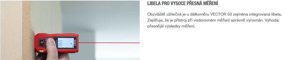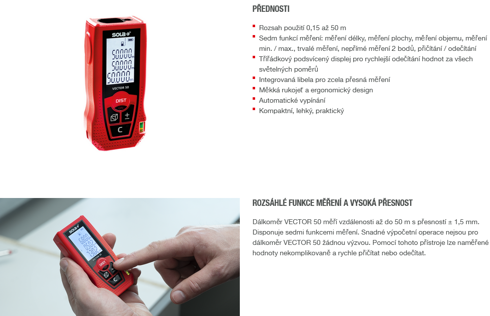 Laserový dálkoměr, VECTOR 50, délka 105 mm, rozměr 105 x 47 x 27 mm, SOLA