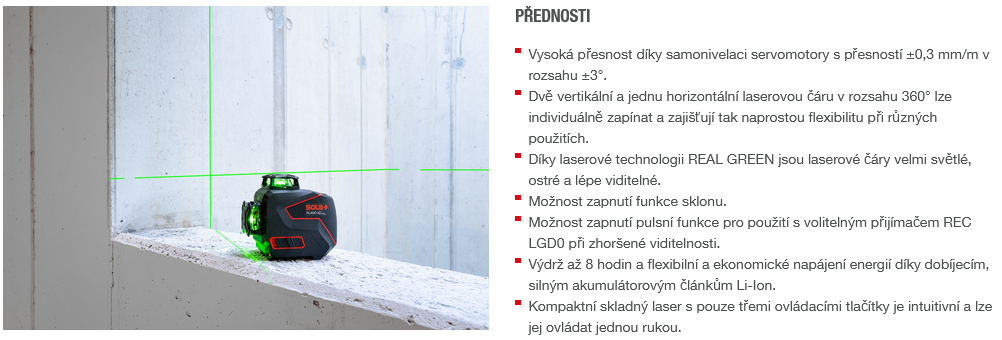 Liniový laser, PLANO 3D GREEN, délka 300 mm, rozměr 150 x 95 x 125 mm, SOLA