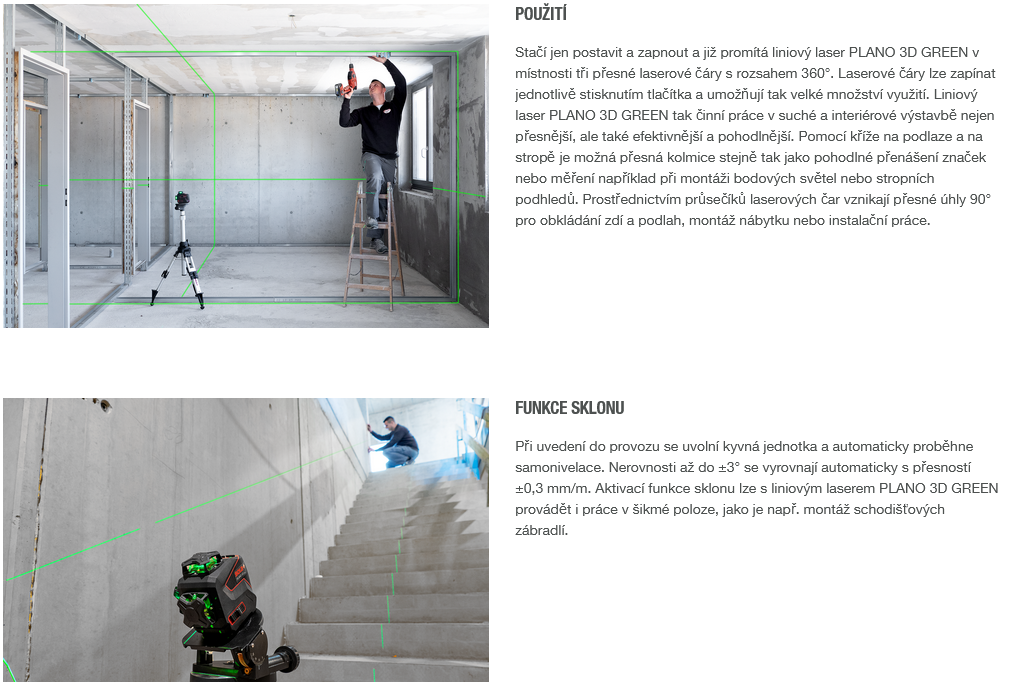 články, boduje kromě toho liniový laser PLANO 3D GREEN i dlouhou výdrží.