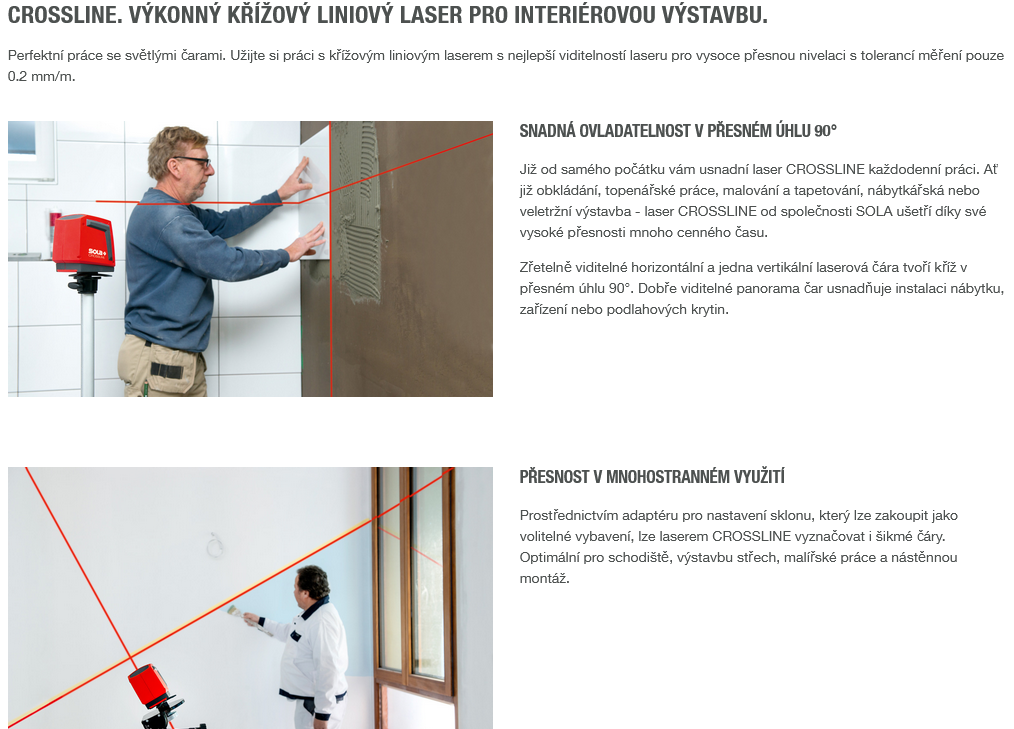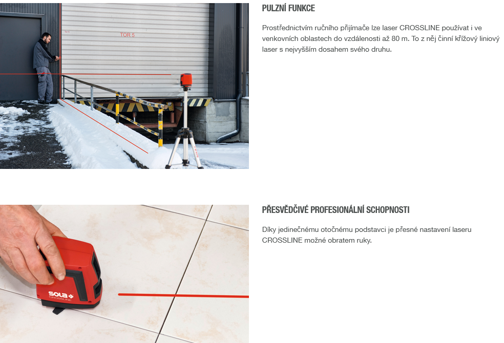 Liniový křížový laser, CROSSLINE, délka 291 mm, rozměr 120 x 65 x 105 mm, SOLA
