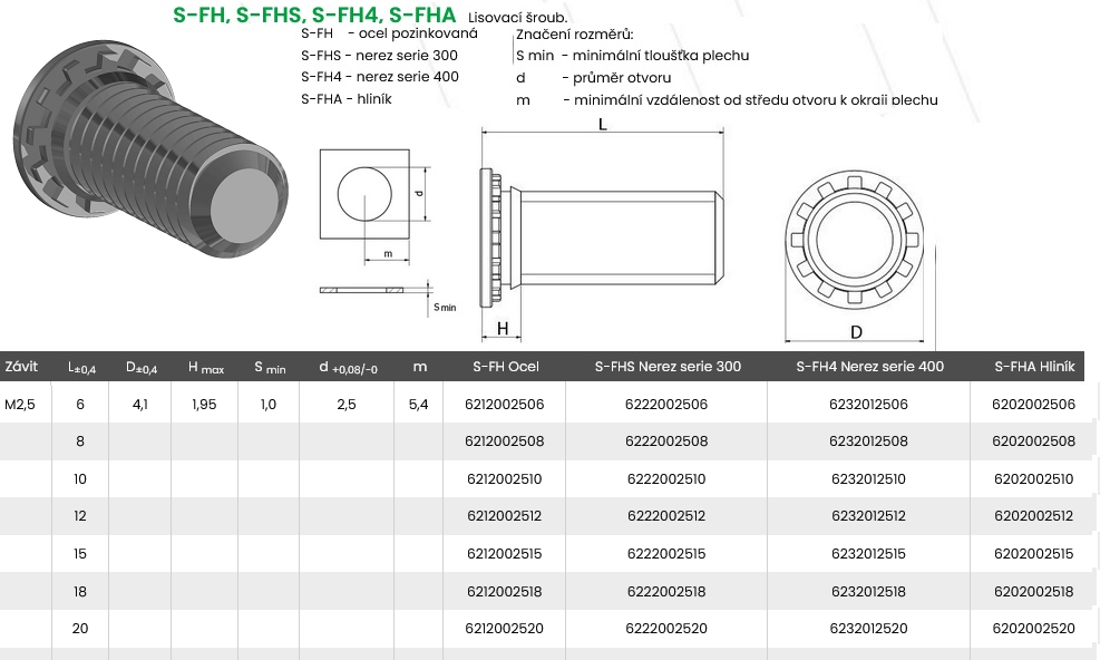 Lisovací šroub S-FHS M2,5x18