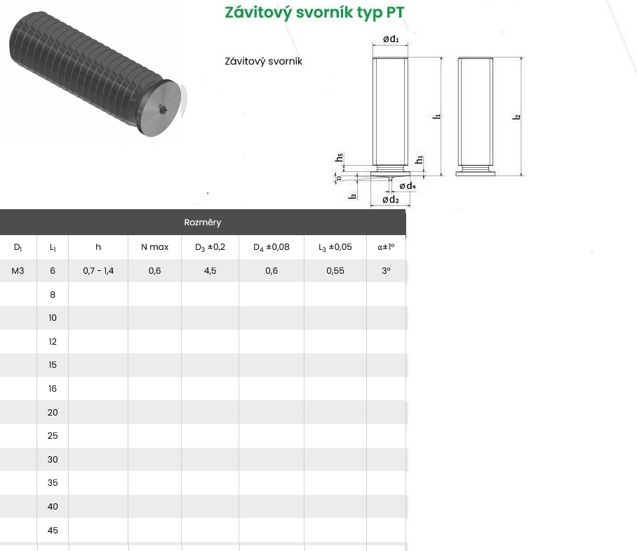 Přivařovací svorník PT M3x6 A2-50