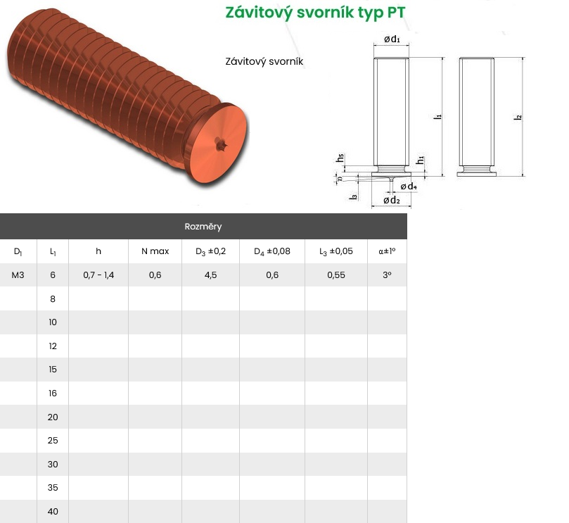 Přivařovací svorník PT M4x35 StCu