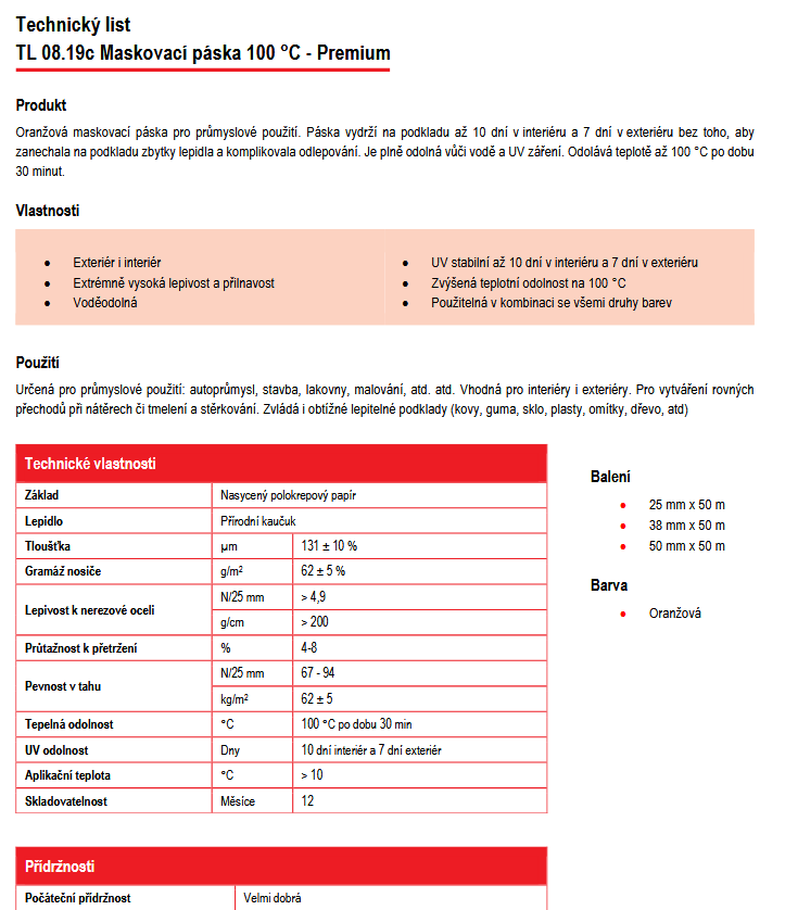 Varianta: Maskovací páska 100 °C PREMIUM šířka 25 mm 50 m oranžová