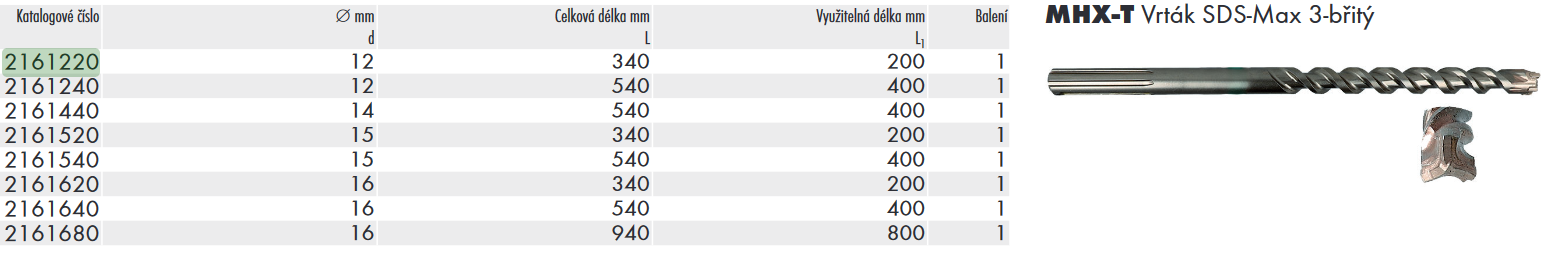 Varianta: MHX-T vrták 3-břit 16 x 940 / 800 mungo příklepový, SDS-Max stopka, do armovaného betonu