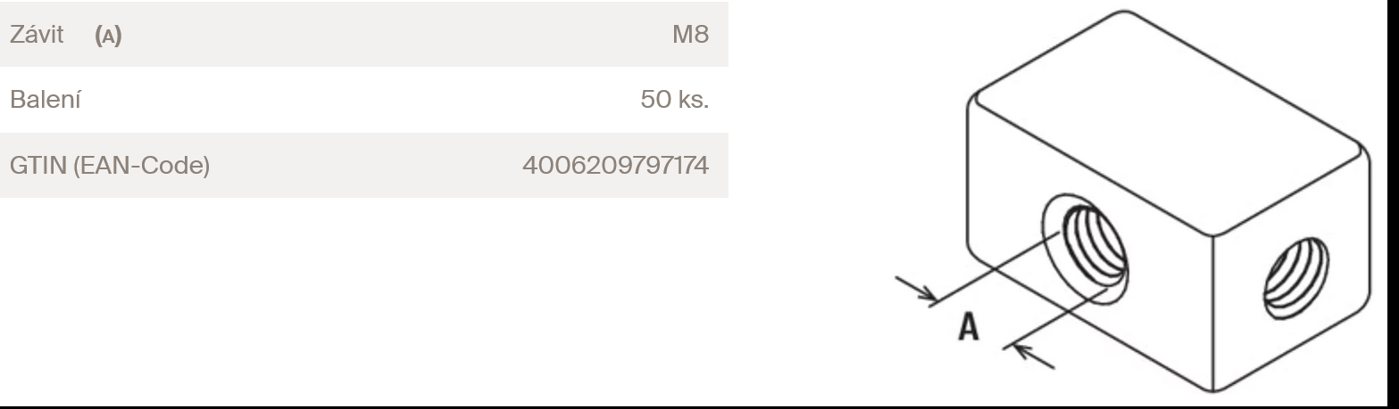 fischer montážní kostka MW M8 pro instalaci paralelního potrubí pomocí závitových kolíků.