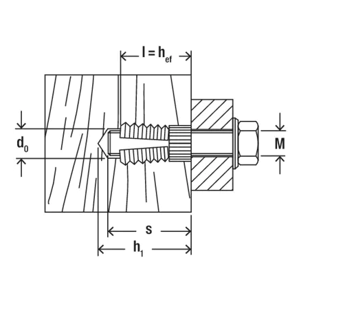 • Při zašroubovávání metrického šroubu se mosazná hmoždinka rozpírá v přední části a kotví spolehlivě do podkladu.