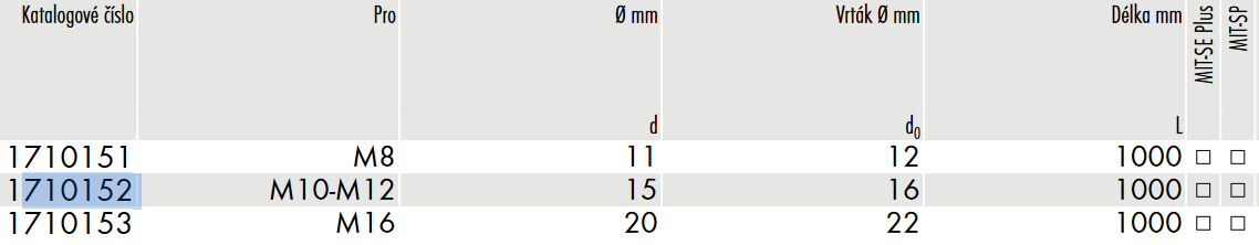Varianta: MSM 15 x 1000 kovové děrované pouzdro mungo pro závitovou tyč do M12