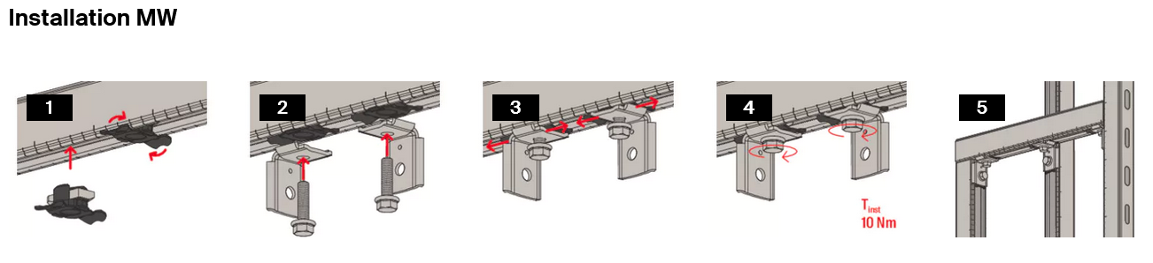 - Jedinečný tvarový zámek úhelníku MW 90° umožňuje rychlou a přesnou montáž rovnoběžně nebo kolmo k podélné ose montážní lišty.