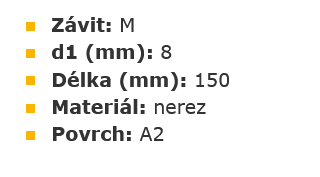 Napínací šroub 150 mm M8 nerez A2