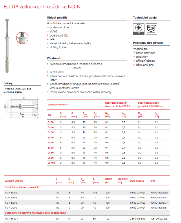 • Hlava hřebu s drážkou Pozidriv pro demontáž nebo ustavení kotvy
