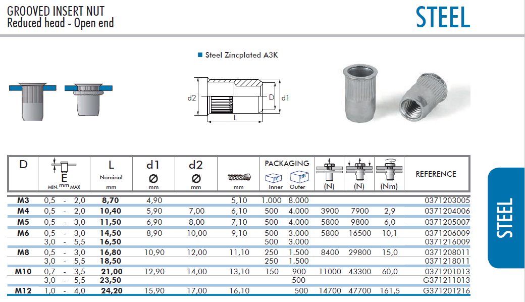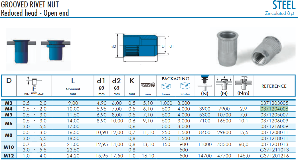 Nýtovací matice REDUKOVANÁ ZÁPUSTNÁ HLAVA vroubkované tělo pozink ZNB
