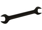 Oboustranný maticový klíč s černěným povrchem. Profilované tělo, otevřené ploché čelisti.