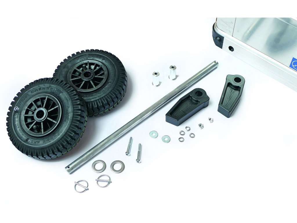 Na přání vybaví ZARGES bedny K424 XC sadou Offroad Mobilita i v těžkém terénu mimo cesty Hodnotná bantamová kolečka, průměr 220 mm Zvětší výšku bedny o 65 mm Namontované podpěry umožňují vodorovné postavení bedny Po přípravě během výroby lze kolečka a osu namontovat a demontovat bez nářadíDoplňkové parametry