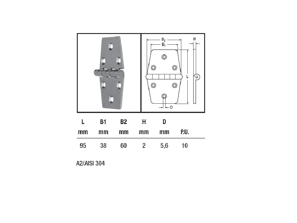 Varianta: Pant leštěný WM8049 - 6 děr 95 X 60 X 2 mm - nerez A2 - AISI 304