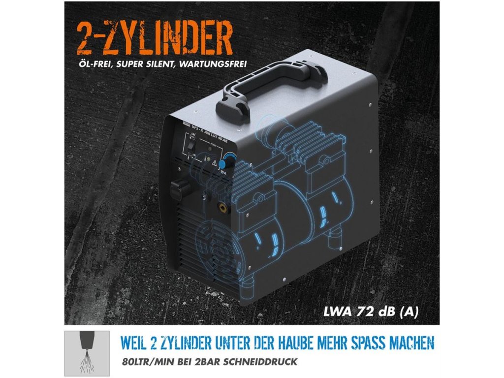 Vlastní zdroj stlačeného vzduchu (vestavěný kompresor) • plazmové zařízení s vhodným využitím v (domácích) dílnách nebo při opravách (montážích) venku.