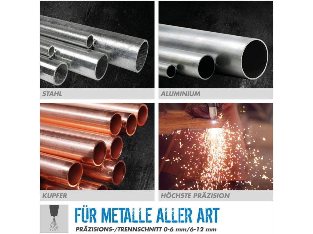 Rychlé (přesné) řezání kovů elektrickým obloukem a proudem plazmového plynu (uhlíkatá i nerezová ocel, hliník, měď, litina atd.) • oddělování materiálu do max. průměru 12 mm (ocel).