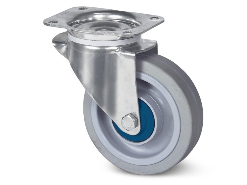 Pojezdové kolečko nerezové pro transportní zařízení 100mm, otočné, plotýnka, 8470UFX100P62 LW46 šedá
