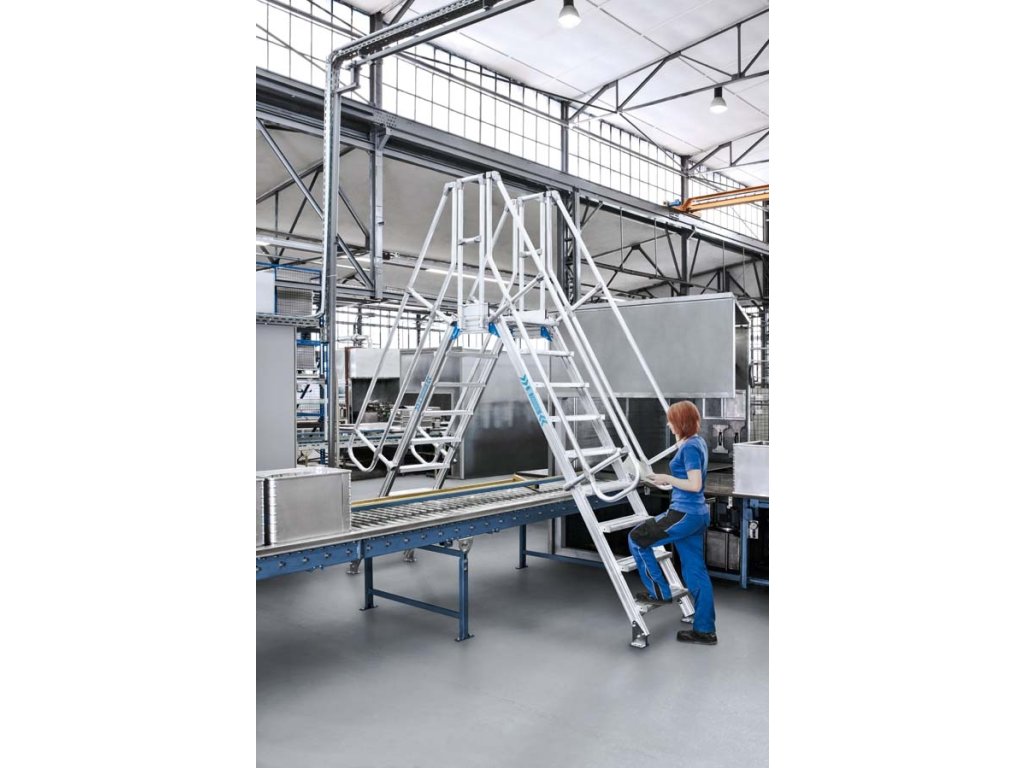 Velká plošina se zábradlím pro bezpečnou práci Volitelná šířka stupňů 600, 800 nebo 1000 mm Povrch stupňů a plošiny sériově z rýhovaného al. plechu (R10). Volitelně také možnost volby ocelového roštu (R12) nebo děrovaného plechu (R13) - konfigurátor www.creaxess.cz Délka plošiny 600 mm. Jiné délky na www.creaxess.cz Volitelně s pojezdem pro mobilní použití - konfigurátor www.creaxess.cz Možnost individuální konfigurace zábradlí na plošině, volitelně s dvířky nebo závorou - konfigurátor www.creaxess.cz Maximální flexibilita díky odnímatelnému zábradlí - konfigurátor www.creaxess.cz Snadná a rychlá montáž díky spojovacímu systému ZARGES s vysokým stupněm předmontování Na milimetr přesné provedení těchto schodů (a také pojízdné provedení) můžete sami konfigurovat na www.creaxess.cz Nosnost 300 kgDoplňkové parametry