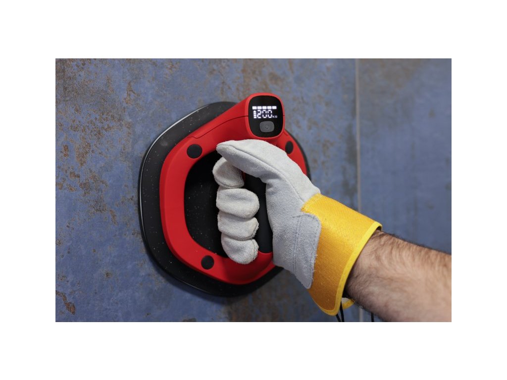 akumulátorová přísávka s průměrem 220 mm a vysokým podtlakovým výkonem až 200 kg certifikovaná nosnost přísavky až 110 kg Li-ion akumulátor 3,7 V / 2000 mAh - výdrř až 800 cyklů rychlé spuštění - dvojím stisknutím tlačítka (dvojí stisk zamezuje náhodnému spuštění nebo naopak uvolnění při práci!), uvolnění přísavky opět dvojím stisknutím tlačítka - pohodlnější práce při použití dvou přisavek - jednoduchě ovládání jen palcem automatické spuštění vakuování při poklesu podtlaku pod hodnotu 160 přísavka má speciální okraj pro práci nejen s hladkými povrchy, ale také se strukturovaným povrchem obkladu nebo dlažby, přísavku lze použít také pro přenášení skel, oken, dveří, lamina, plechů apod. moderní design, kvalitní materiály a zpracování, pohodlný úchop přísavka je uložena v plastovém kufru s molitanovou výplní, součástí balení je i nabíječka USB-C