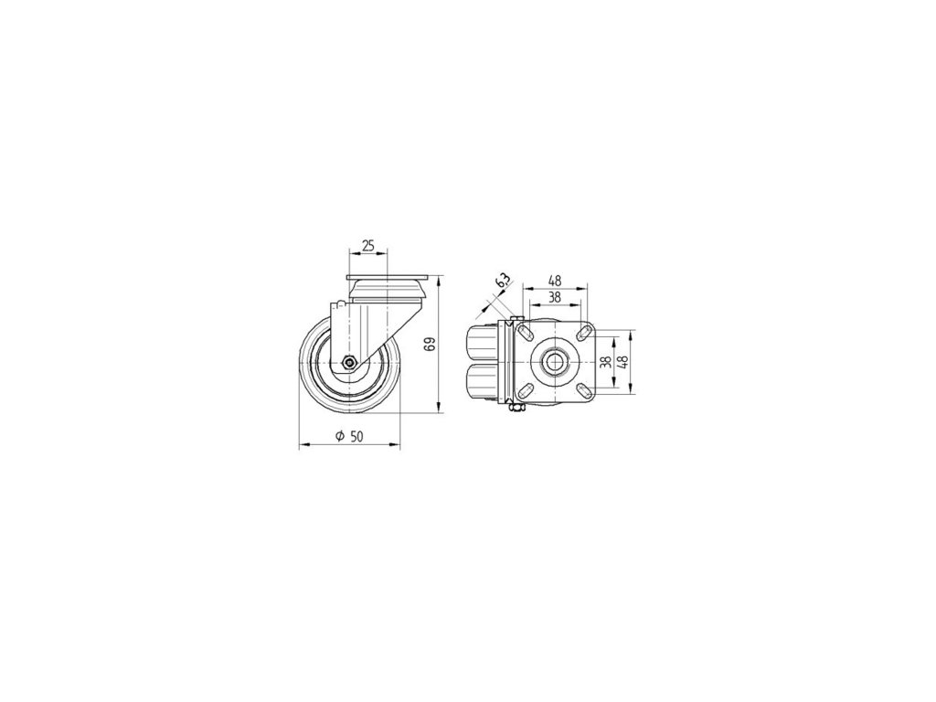 Přístrojová kolečka 50mm, otočná, plotýnka, 2970DIK050P40