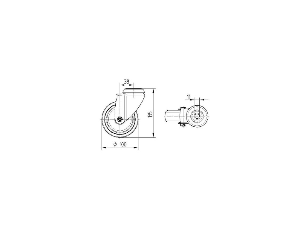 Přístrojové kolečko 100mm, otočné, otvor pro čep, 2470DIK100P30-11