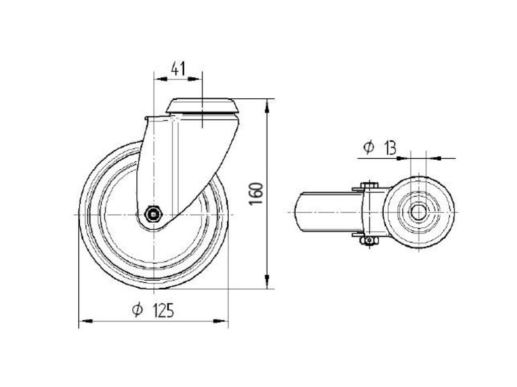 Přístrojové kolečko 125mm, otočné, otvor pro čep, 2470DIK125P30-13