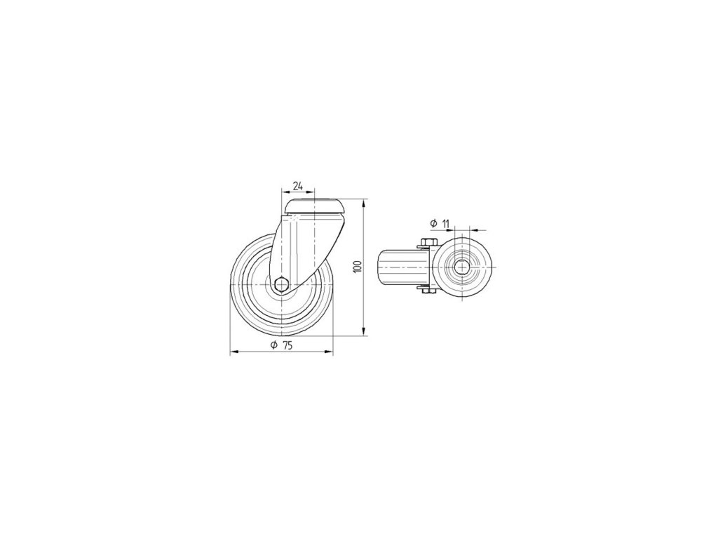 Přístrojové kolečko 75mm, otočné, otvor pro čep, 2470DIK075P30-11