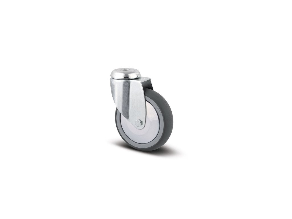 Otočné kolečko, Vidlice vyrobena z ocelového výlisku, pozinkováno, dvojité kuličkové ložisko v otočné hlavě, otvor pro čep. Střed kola vyroben z polypropylénu, Běhoun: TENTEprén (termoplastická guma), neznačkující, protivláknový kryt, kluzné ložisko Kolečko může být namontováno se standardními šrouby s libovolnou délkou.
