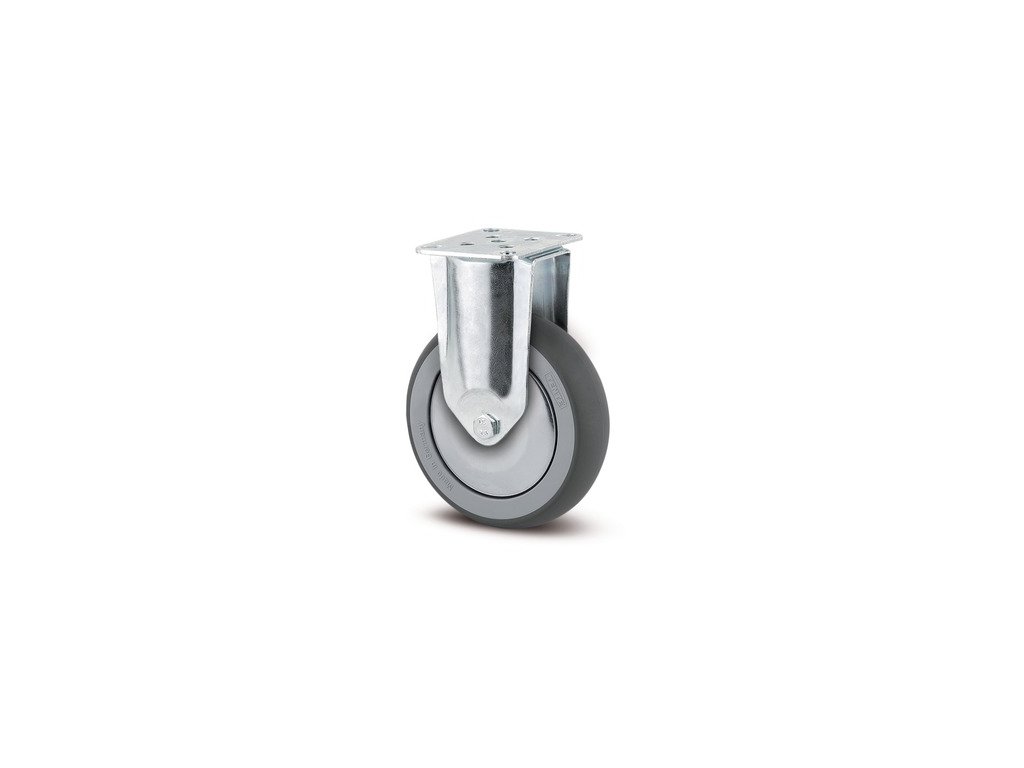 Pevné kolečko, Vidlice vyrobena z ocelového výlisku, zikochromátováno, uchycení s plotýnkou. Střed kola vyroben z polypropylénu, Běhoun: TENTEprén (termoplastická guma), neznačkující, protivláknový kryt, kluzné ložisko
