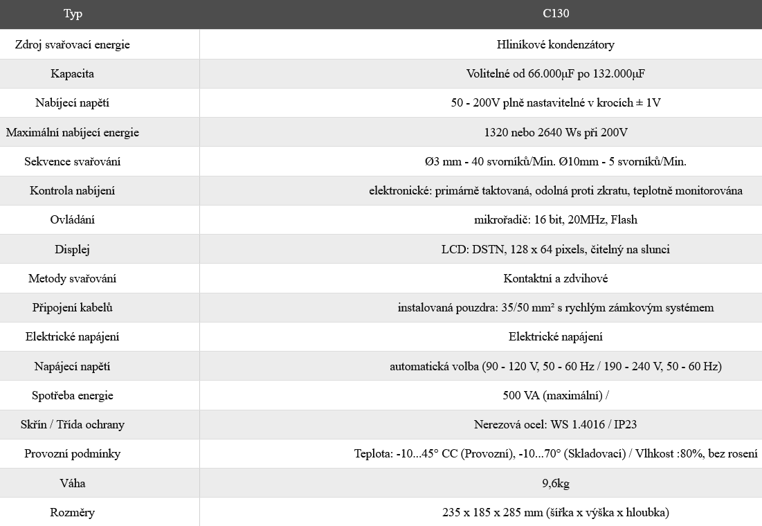 Přivařovací stroj kondenzátorový C130 + kontaktní pistole P05-K