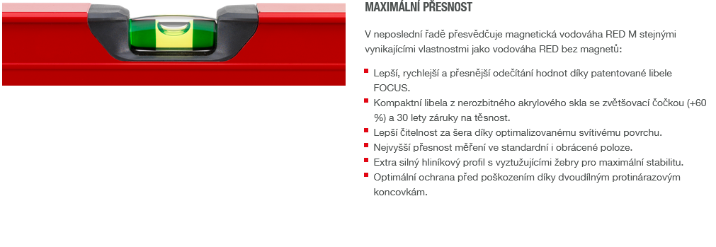 | Tolerance měření ve standardní poloze | 0,30 mm/m (0 017°) |
