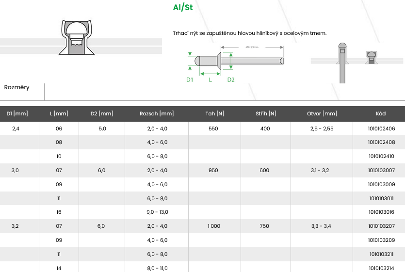 Trhací nýt SARIV Al/St 2,4x10 ZH