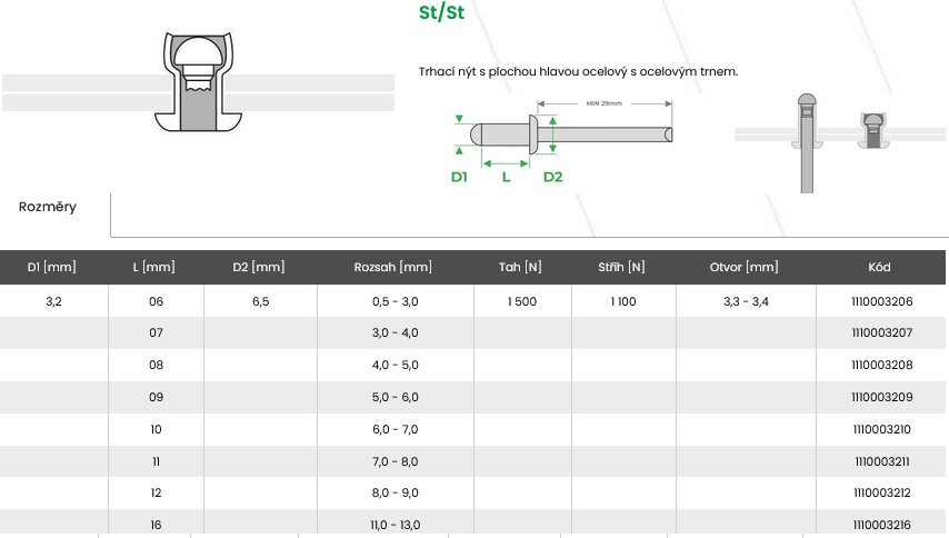 Trhací nýt St/St 3,2x6 E