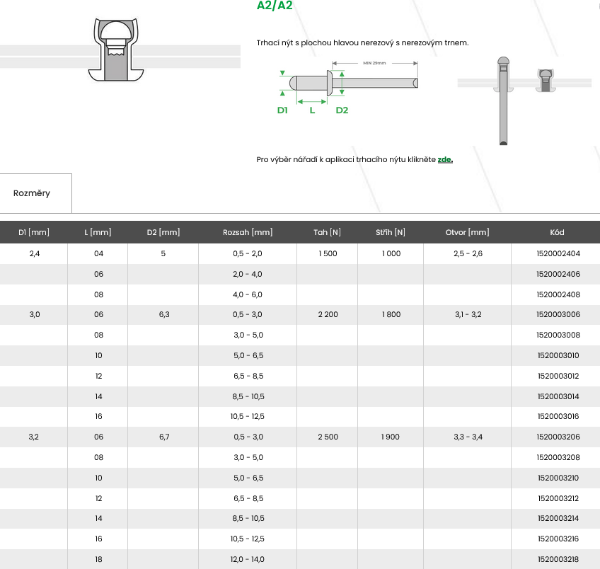 A2/A2 nerezový nýt, nerezový trn( nerez A2)