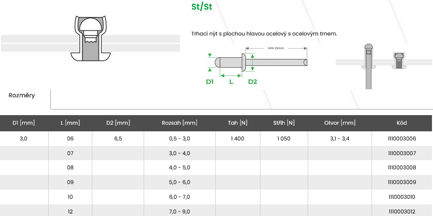 St/St ocelový nýt, ocelový trn (galvanický zinek)