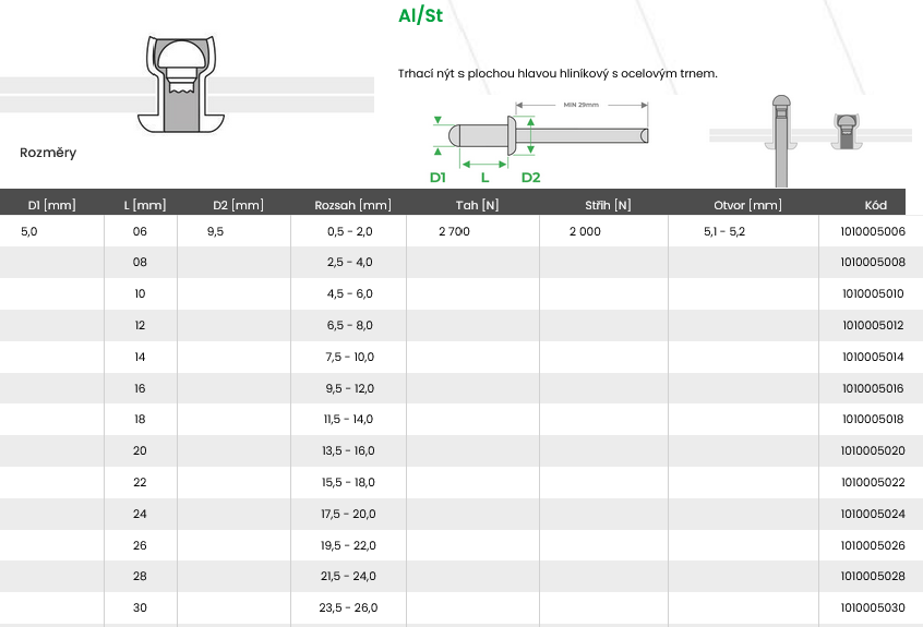 Al/St hliníkový nýt, ocelový trn