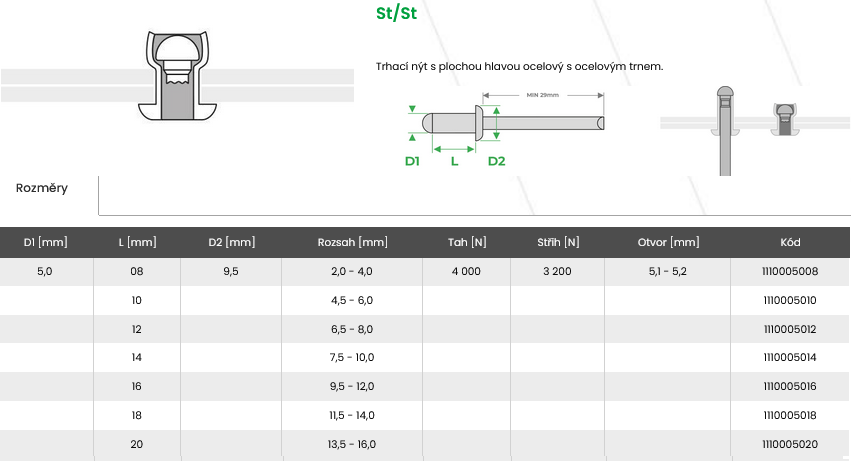 Trhací nýt St/St 5,0x10 E
